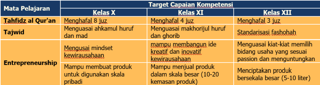 Program Tahfidz 3 Tahun. Program ini dihadirkan bagi peserta didik lulusan Sekolah Menengah Pertama dan melanjutkan ke Madrasah Aliyah Bilingual. Targetnya adalah setelah lulus sekolah di